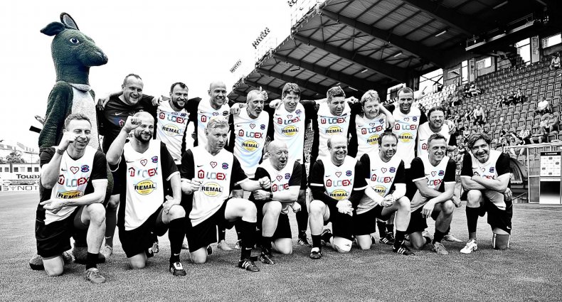 Pořádnej mančaft. hele, přijeli Kuba Voráček, Michal Frolík, Radek Smoleňák, Ondra Pavelec, Jirka Tlustý, objevil se Dominik Hašek, Marek Nikl,ukázai se i Ondra Lípa nebo Luděk Zelenka a další hvězdy. Dres Realu Top Praha přetáhli přes hlavu pánové Hampl, Noha, Bednář, Brabec, Müller, Kozel, Štefek, Smita,Novotný, Vidlička, Klíma, Diviš, Nouzák, Babica, Ujfaluši, Suchařípa a ani já nechyběl. Na našich vypracovaných tělech tentokráte v šatně výjimečně ulpěl i pohled ženy. Povolení ke vstupu totiž dostala krásná a skvělá fotografka, paní Thao. No, myslím, že se s některými pohledy a vzpomínkami bude ještě dlouho vyrovnávat. Například důkladnou rozcvičku pana Klímy už asi nikdy neuvidí. Opravdu bylo co fotit, protože hokejky kousaly. Po poločase byl stav 2:2. Na straně soupeře zlobil přavážně pan Zelenka. Nakonec dal všechny tři góly Los Hokejos, Všechny z vápna a žádný ze sprintu, jak bývalo jeho dobrým zvykem. Ovšem za nás se prosadil dvakrát pan Vidlička, neuvěřitelnou střelou pan Klíma, tentokráte nastoupivší jako hbité křidýlko (chápu, že se usmíváš...), skórovali i pánové Brabec a Bednář, penaltu proměnil pan Novotný. Takže suma sumárum 6:3. Zvláštní ocenění tentokráte patří panu Hamplovi za vynikající defenzivní práci a rychlé návraty před vlastní branku. Hrál se dobrej fotbal, díky partnerům se vybralo 120 000 kaček pro Lukáše Demla, myslím, že můžeš být spokojený. My byli. I večer, kdy jsme v Konviktu probrali tak nějak pohromadě všechna důležitá celospolečenská témata. Prokousali jsme se k remíze přes několikeré prodloužení, nebezpečné nájezdy zelenou jsme taktéž zlikvidovali. No, už se těšíme na šestý ročník. Tak se měj, Luky, zase se ozveme...